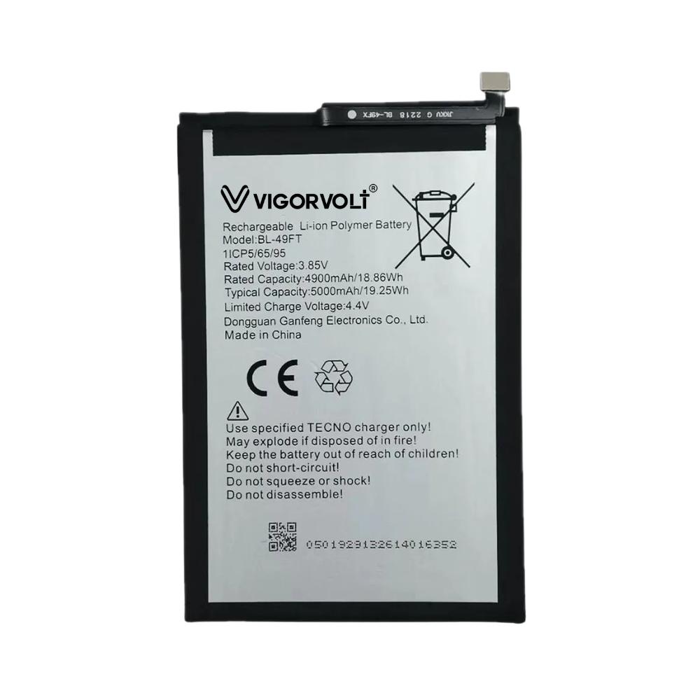 Vigorvolt Original Mobile Battery for Tecno Spark Go 2020/ Tecno Spark 5/ Tecno Camon 15 / Tecno Pop 4/ Tecno Spark 5 Pro/ Tecno Spark 6 Go/ Tecno Camon 15 Air/ Tecno Pop 4 Air/ KE5/ CD7/ BC2C (49 FT)