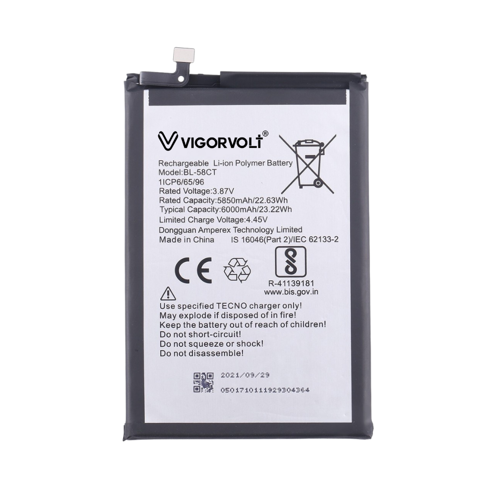 Vigorvolt Original Mobile Battery for Tecno Spark 7/ Tecno Spark 7T (58 CT)