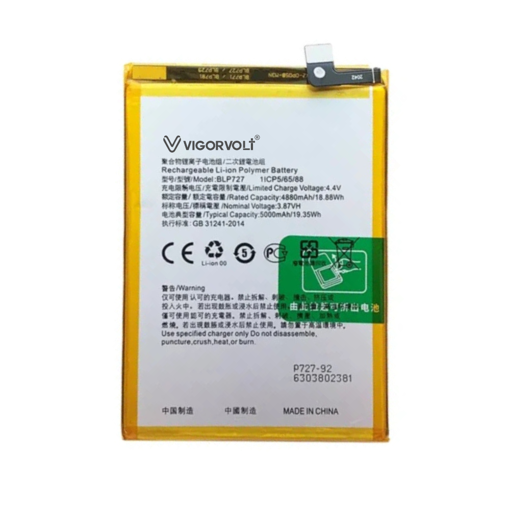 Experience nonstop performance with the Vigorvolt BLP 727 Mobile Battery for Oppo A5 2020/ Oppo A9 2020, packed with a powerful 5000mah capacity that keeps your phone running longer – whether you’re working, gaming or on the move.