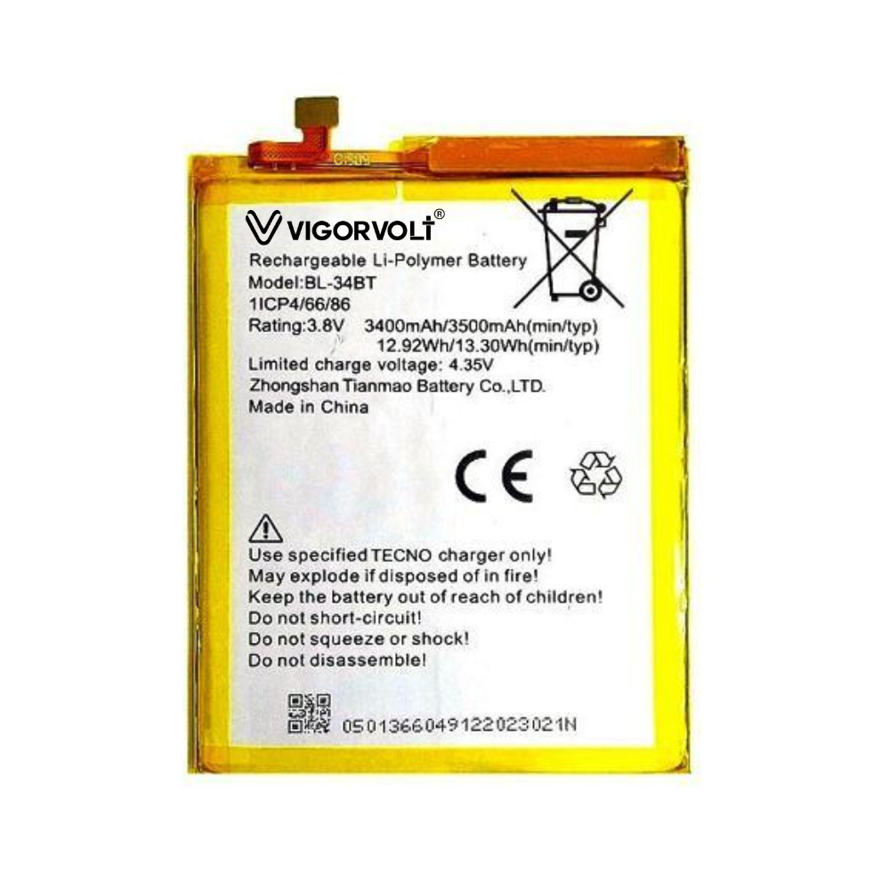 Vigorvolt Original Mobile Battery for Tecno Spark Go 2020/ Tecno Spark 5/ Tecno Camon 15 / Tecno Pop 4/ Tecno Spark 5 Pro/ Tecno Spark 6 Go/ Tecno Camon 15 Air/ Tecno Pop 4 Air/ KE5/ CD7/ BC2C (49 FT)